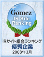 「Gomez IRサイトランキング 2012」 総合ランキング 第2位