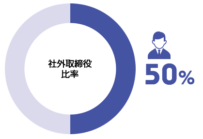 2001年6月から社外取締役を招聘するなど積極的な選任により、現在の社外比率は過去最高の50%に達しています。社外取締役からの意見やアドバイス、チェックなどにより取締役会の透明性・信頼性を向上、かつ活性化させながら、経営監視機能の強化を図っています。