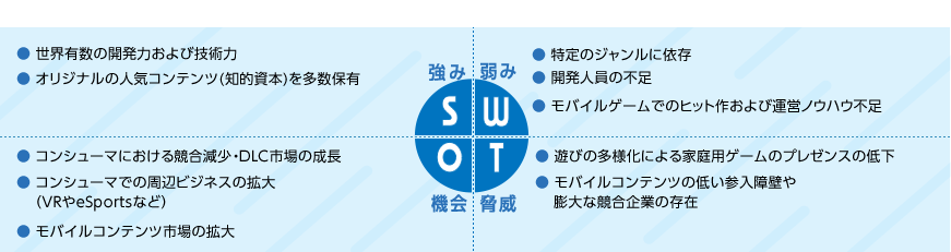 同市場では、2010年頃から「フリーミアム型(アイテム課金・ゲーム内課金)」と呼ばれる、無料でゲームをダウンロードし、ユーザーが必要に応じてゲーム内でアイテムや通貨を購入する収益モデルが主流となっています。同ゲームにおいては、「コンテンツ力(ブランド・ゲーム内容)」および適切なサービスならびに課金を行う「運営力」が鍵となるため、人気ソフトを多数保有するゲーム会社で、かつ運営ノウハウを蓄積しているモバイル開発会社の収益機会が拡大しています。