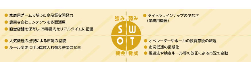 当期(2017年3月期)の当社においては、パチンコ&パチスロ(PS)は『モンスターハンター 狂竜戦線』が家庭用ゲームとの好循環により大ヒットを放ち、計画を上回る3.7万台を販売しました。また、業務用機器販売においては、アーケードゲーム機『マリオパーティ ふしぎのチャレンジワールド』を発表したほか、既存商品のリピート販売に注力しました。