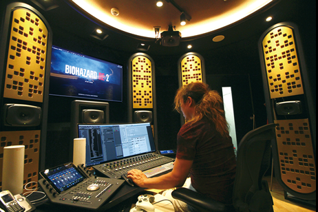 ストーリー面では、オリジナルを踏襲しつつ、より深いドラマ性を持たせて印象に残るように工夫。ゲームシステムは、ゾンビ達に”喰われる恐怖”が最大限感じられるよう、自分が操作するキャラクターと襲いかかってくるゾンビの両方が見える三人称視点のビハインドビューを採用。ビジュアル面では、『7』でその実力を示した、独自の開発エンジン「RE ENGINE」を用い、恐怖の世界を実写と見紛うほどのフォトリ アルで表現しました。音響面では、研究開発ビル内に3D音響ブース「ダイナミックミキシングステージ」を新設し、ドルビーアトモスと呼ばれる7.1.4chシステムを採用。更に、まるでその場に居合わせたかのような臨場感を再現できるバイノーラル技術を駆使してリアルタイムでの音像変化に対応し、前後左右からのゾンビのうめき声を表現、視覚だけでなく聴覚にも働きかけ、より恐怖を体感できるようにしています。