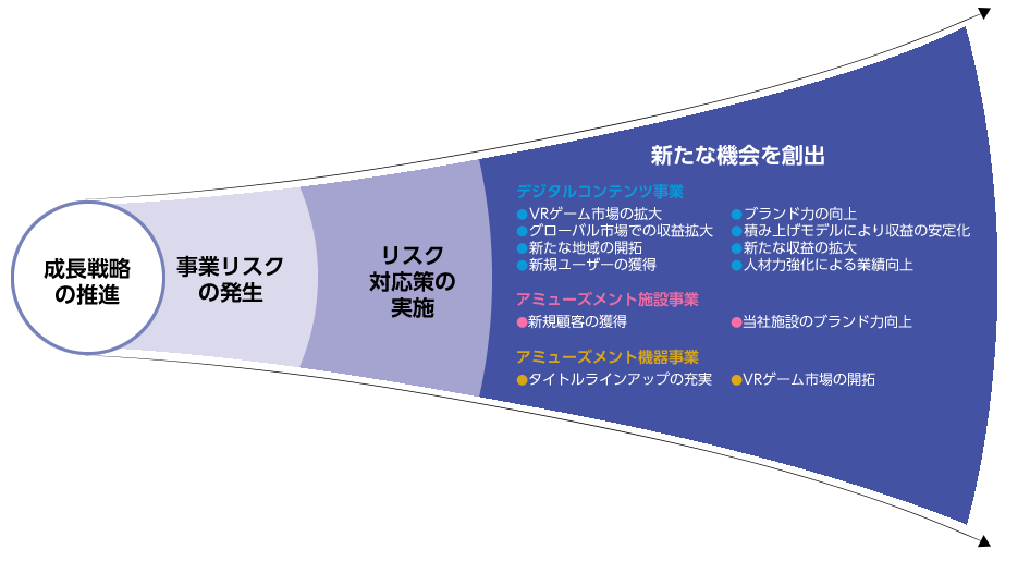 当社は、中期経営目標「毎期、営業増益」を実現するため成長戦略を推進しています。しかしながら、成長戦略の推進には、必ず事業リスクが伴います。そこで、当社では、想定される各リスクの対応策を実施することでリスクを回避・低減し、新たな成長の機会を創出するリスクマネジメントを推進しています 。