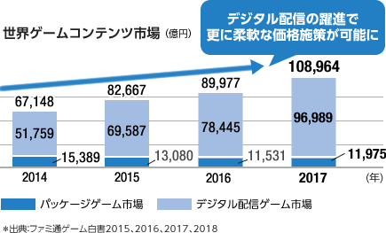 | 中古ソフト市場の拡大やアジア市場における違法コピー商品の氾濫 | DLC比率を向上させることで、中古市場への流通と、違法コピーを抑え、正規品の販売を拡大 | |