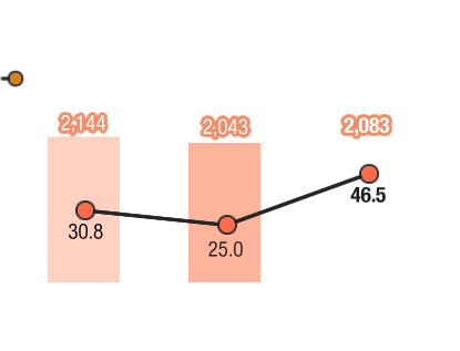 As a result, both sales and profits were up, with net sales at 2.083 billion yen (up 2.0% from the previous year) and operating income at 969 million yen (up 89.8% from the previous year).