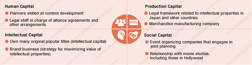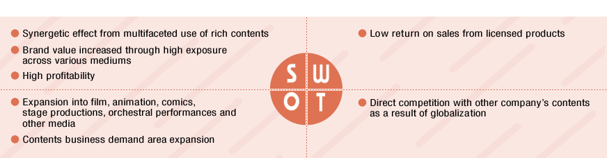 Based on our Single Content Multiple Usage strategy of developing game content for various media, we pursue a variety of copyright-related business opportunities including publishing (walkthrough and strategy guides as well as game art books) and licensing (music CDs and merchandise). Furthermore, we are concentrating on developing game content into movies and animated television programs.