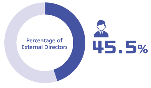 Capcom’s current ratio of external directors is 45.5% through proactively appointing external directors since June 2001. The advice, opinions, and scrutiny provided by external directors increases the transparency and credibility of Board of Directors’ meetings and vitalizes the same, while also strengthening the function of the meetings to supervise management.