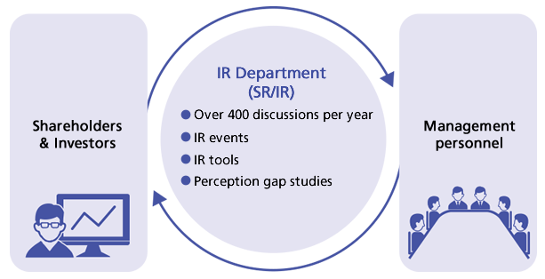 Capcom’s IR Department engages in discussions with analysts and investors over 400 times per year. In addition to promoting understanding of management policies and business strategies, the IR Department applies these activities to corporate management, summarizing market opinions and providing feedback to management personnel. Capcom is also further enhancing events and tools for investors, strengthening shareholder and investor relations activities.
