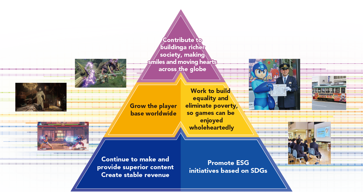 Our purpose is to be a creator of entertainment culture. Through development of highly creative software contents that excite people, stimulate their senses, and bring smiles to their faces we aim to offer an entirely new level of game entertainment. Since Capcom’s establishment in 1983, we have leveraged our strength in world-class development capabilities to create a plethora of products. Game content is an artistic product that fascinates people, consisting of highly creative, multi-faceted elements such as characters, stories, worlds and music. This content can be deployed in a variety of media while being used to support the creation of a richer society. Going forward, Capcom aims to become a company that brings happiness to people and society by offering the most entertaining content in the world.