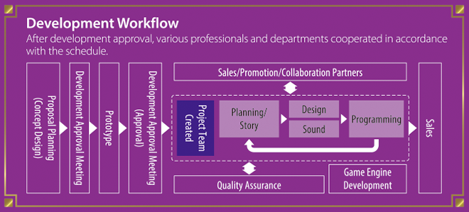 Tasks were written down and copied onto white boards to thoroughly visualize the project.” This enabled the team to engage in daily work process improvements. The ever—evolving game development environment; it is here that the games users choose are born.