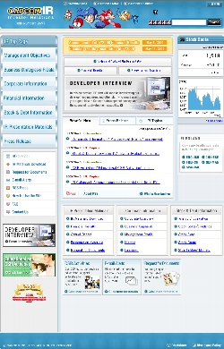 Capcom’s goal is to create an investor relations web site that gives investors and other visitors a complete and well-balanced understanding of the company’s activities and objectives. Numbers, graphs and explanations are used to present information about the company’s markets, business activities and other aspects of operations. In addition, the web site features many components that give visitors more insights into Capcom’s activities. For example, visitors to the web site can listen to interviews with game developers, who are the nucleus of Capcom’s competitive edge, and watch excerpts of hit games from previous years.