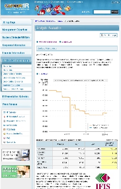 The web site also presents information from sources other than Capcom. Visitors can see information on the consensus of analyst opinions, how analysts evaluate Capcom and other information. By supplying a variety of information from objective sources, Capcom allows investors to view information about its operations and performance from many perspectives. This was a key reason for the number-one ranking of Capcom’s investor relations web site among the sites of all publicly owned companies in Japan.