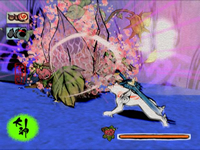 “Okami” is a nature-themed action game in which the hero takes on the form of a wolf named Amaterasu and does battle with ghouls and ghosts in order to restore nature’s beauty to a devastated world. It delivers an audacious visual interpretation of nature and animals, rich and beautiful, rendered in a vivid Japanese-style through unique design techniques that do not rely on tone shaders. Since its release in 2006, Okami has garnered numerous awards, and continues to expand the possibilities of visual artwork within a game with the scheduled all-new October 2009 release of Okami for the Wii®.