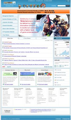 In addition to its investors, Capcom targets a wide range of visitors in order to promote a deeper understanding of the company by expanding its website, principally in terms of the contents of its financial and business segments information pages. For example, on the “Financial Information” page, a detailed graph of the operating results of the past eleven years can be found. On the “Business Segments” page, an introductory video as well as a breakdown analysis of the company’s current strengths and weaknesses (SWOT) are available for viewing. By focusing on presenting its business information through an objective perspective, Capcom’s website ranked first in the category “depth of corporate finances/financial statement information” and third in the category of “positive and innovative disclosure of relevant information”.