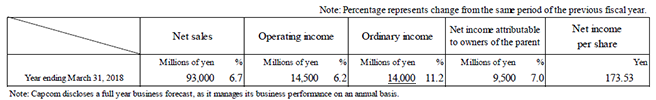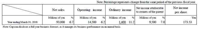 Capcom Co., Ltd. hereby announces that it has amended the “Notice Regarding Partial Amendment to Consolidated Financial Results for the Year ended March 31, 2017 (Unaudited).” Details for the amendment are as follows.