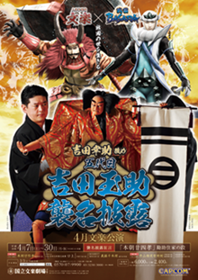 This collaboration came to life after Capcom received a request to utilize characters from Sengoku BASARA, a series that boasts immense popularity among young men and women, in order to both promote the Osakan roots of bunraku and arouse interest in this traditional art among young people. In addition to train-door-sticker advertisements in passenger cars of Kintetsu Railway’s Nara line, a collaboration poster featuring Sengoku BASARA characters will be produced; the poster will advertise the April bunraku performance of Japan’s 24 Paragons of Filial Piety, a story that depicts the rivalry between Takeda Shingen and Uesugi Kenshin, which will be given in honor of the succession of the fifth generation Tamasuke Yoshida. There are also plans to display a promotional panel in the theater throughout the run of the show. Further, original clear bookmarks will be distributed to guests who attend the first act of the performance during the final three days of the show (April 28, 29 and 30).