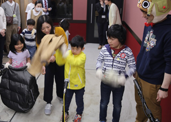 At the Spring School event held on March 28 at Capcom Juku, Capcom employees worked as teachers for the first time. A special class was held at Capcom’s Foley stage, a space dedicated to the production of video game sound effects, where employees educated children on how games are made and the role of music and sound in games. Pupils were able to try their hands at creating different sounds found in games—such as the flapping of monster wings and character voices—in a classroom experience that took full advantage of the unique capabilities of a game company. Kids also joined their parents for an enjoyable lunch at the employee cafeteria, further promoting communication between each parent and child.