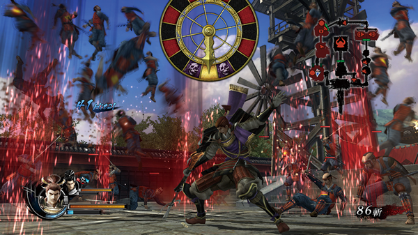 そこからどんどんユニークな企画が生み出されていった。『戦国BASARA2』に登場した宮本武蔵が追いかけてきたり、カラクリ兵器の暁丸を操作して大量の敵をなぎ倒したり、金ダライが落ちてきたり。